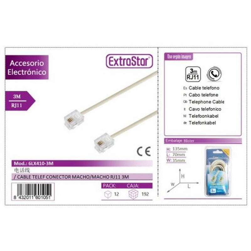 Cable Telefónico ExtraStar RJ11 Macho-Macho 3m (Modelo 6LX410-3M)