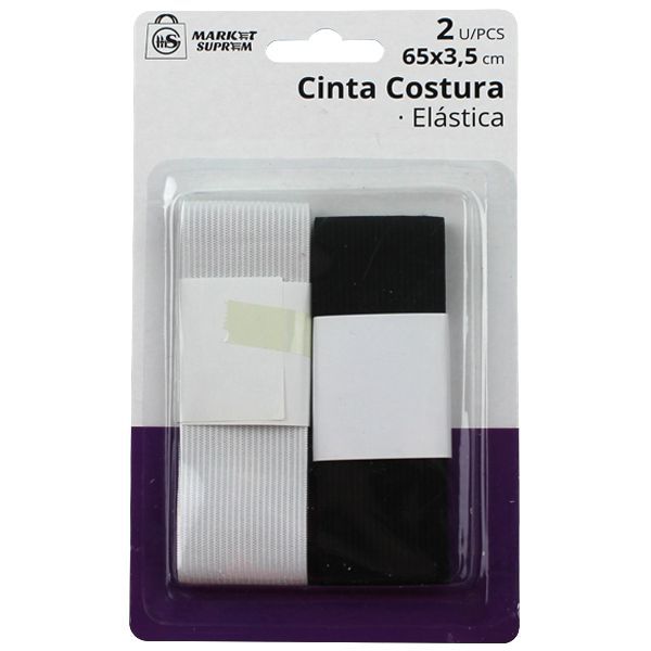 Cinta de Costura Elástica en Blanco y Negro (65 cm x 3.5 cm) - Pack de 2
