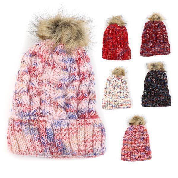 Gorro de Punto con Pompón de Pelo - Diseño Multicolor