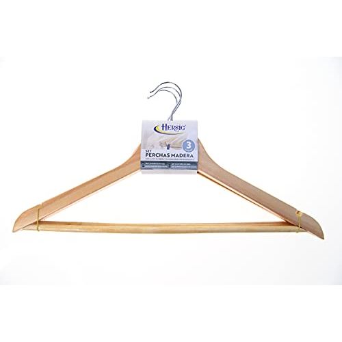 Perchas de Madera Clásicas: Perfectas para camisas, chaquetas y pantalones. Su barra transversal es ideal para prendas que necesitan un soporte adicional, con un acabado suave que protege la ropa de enganches.