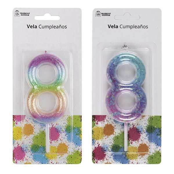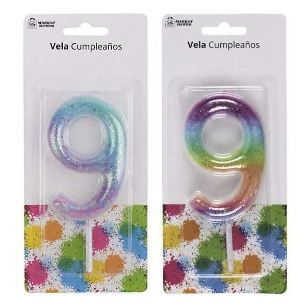 Vela de Cumpleaños con Efecto Arcoíris y Purpurina (Números 0-9)