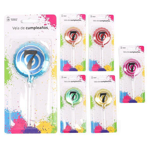 Vela de cumpleaños número 7 diseño globo metálico Market Suprem