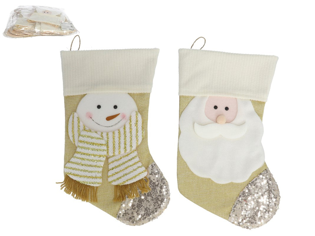 Botte de Noël dorée au design festif – Père Noël et bonhomme de neige