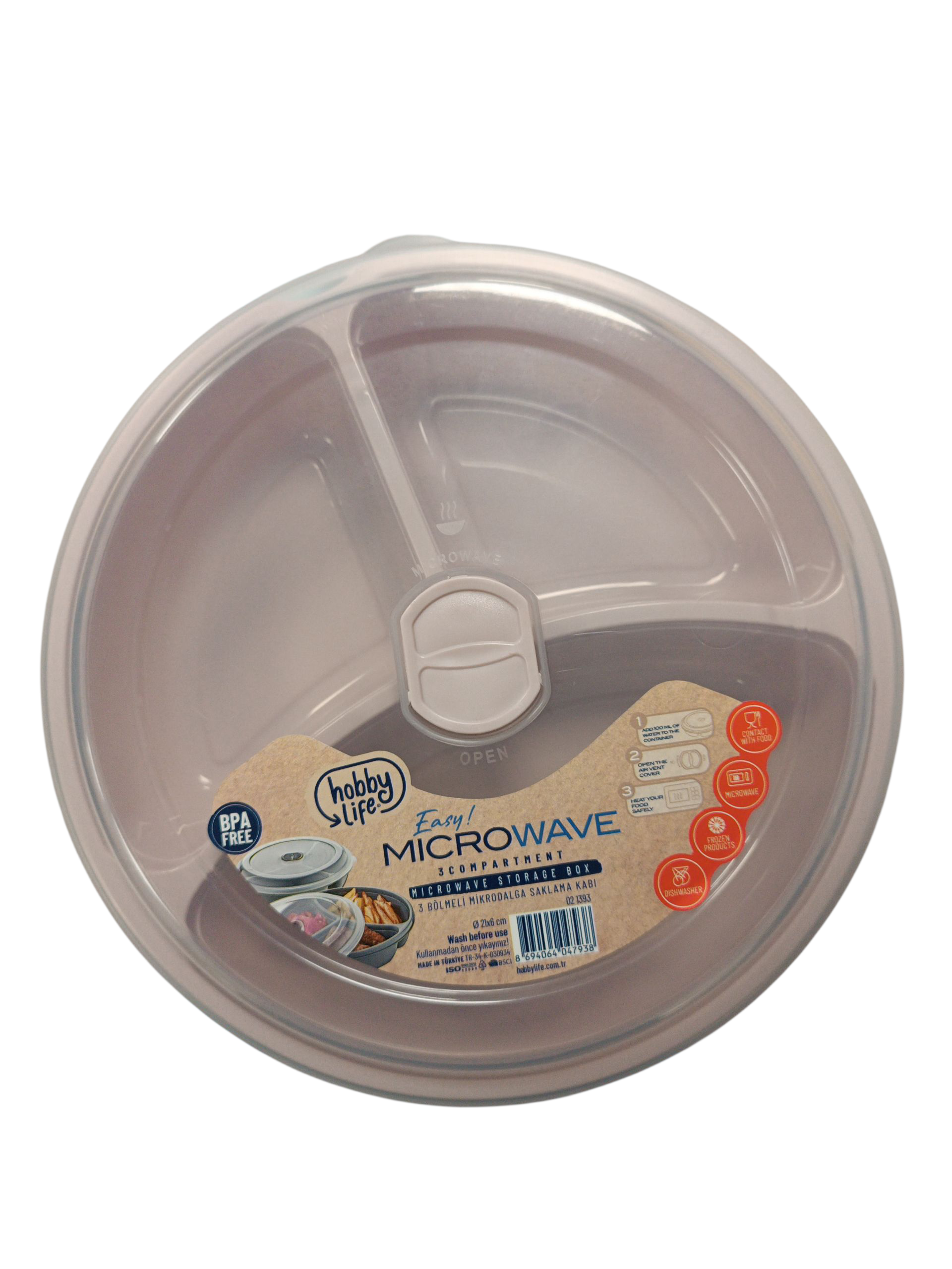 Fiambrera 3 Compartimentos con Tapa Apta para Microondas Hobby Life - 21X6Cm