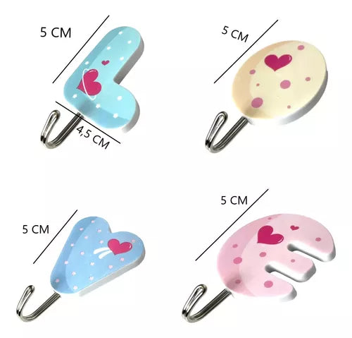 Ganchos Decorativos con Diseño de Corazón - Pack de 4