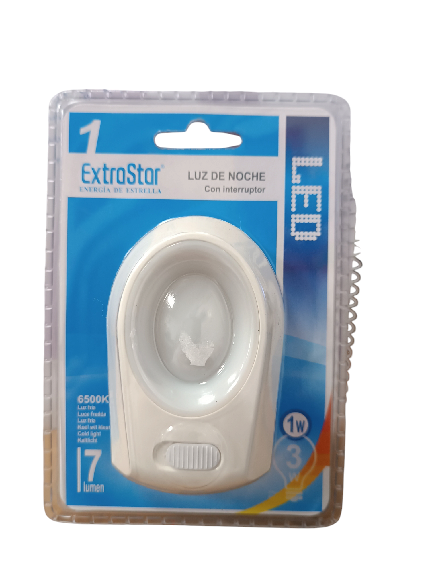 Luz de Noche LED ExtraStar con Interruptor - 1W, 6500K, 17 Lumen