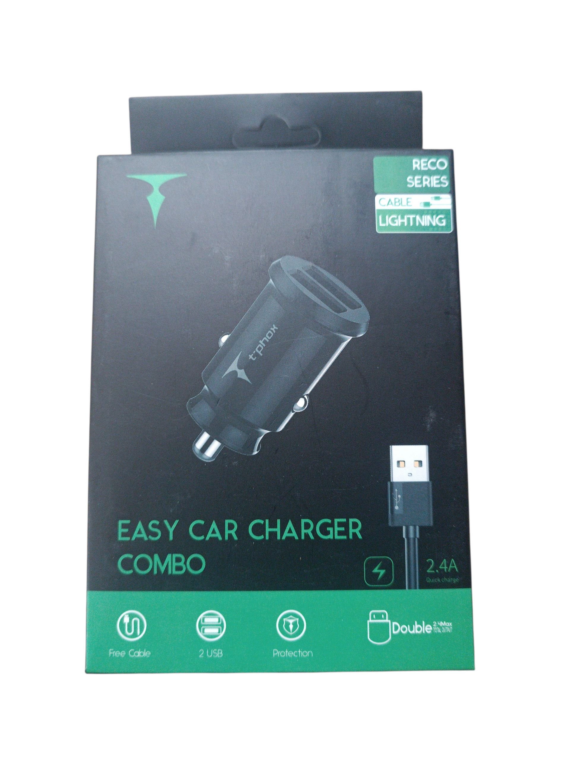 Cargador de Coche + Cable Lightning T'Phox - 2.4A (Salida 3A)
