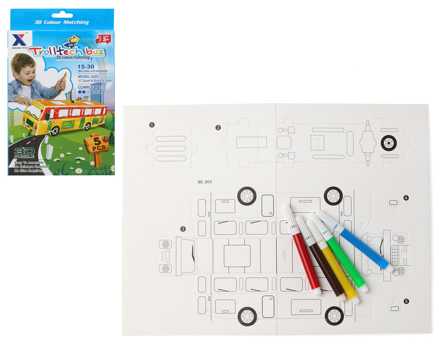 Kit de Manualidades Trolltech Bus 3D - Diseña, Colorea y Construye