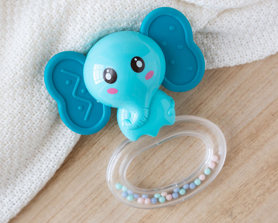 Mordedor Sonajero Elefante KioKids – Silicona Suave para Dentición Infantil (+0 Meses)
