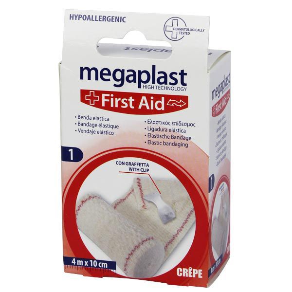 Rollo de Venda Elástica Megaplast + Clip para Sujeción - 1ud (4m x 10cm)