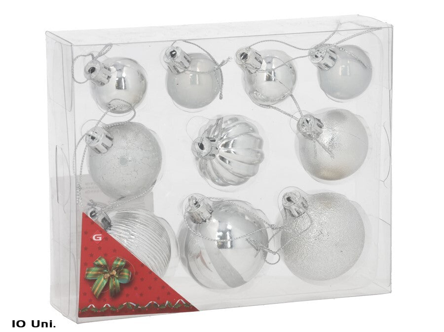 Set de Bolas Navideñas Plateadas - Decoración Elegante (10 Unidades)