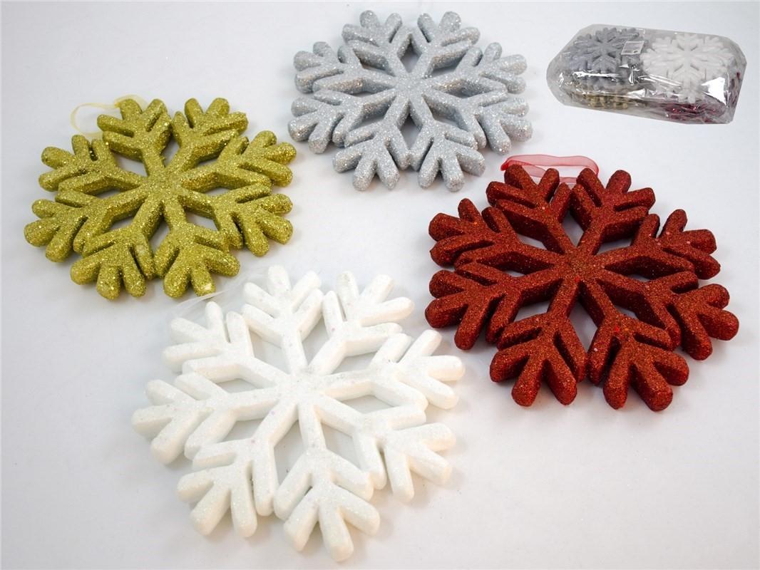 Set de Copos de Nieve Decorativos Brillantes – 4 Colores Festivos