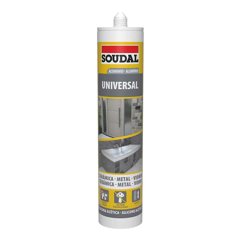 Silicona Acética Universal Soudal Aluminio Sellador de silicona de alta calidad para uso general en el hogar y construcción. ✅... Leer más...