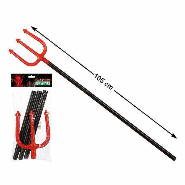 Completa tu disfraz de demonio o diablo con este tridente de 105 cm. Con su diseño clásico en color rojo y negro, se convierte en el accesorio perfecto para darle un toque aterrador a tu look en Halloween o fiestas temáticas. Su estructura desmontable facilita su almacenamiento y transporte.