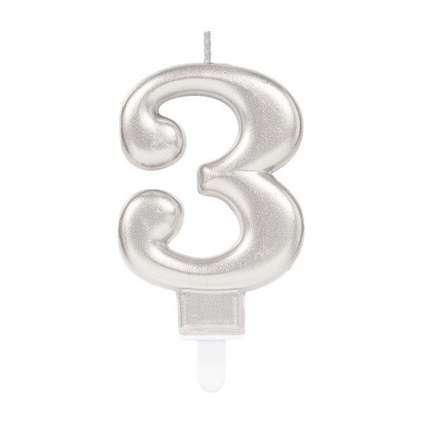 Vela de Cumpleaños Numérica Nº3 Plateada Atosa