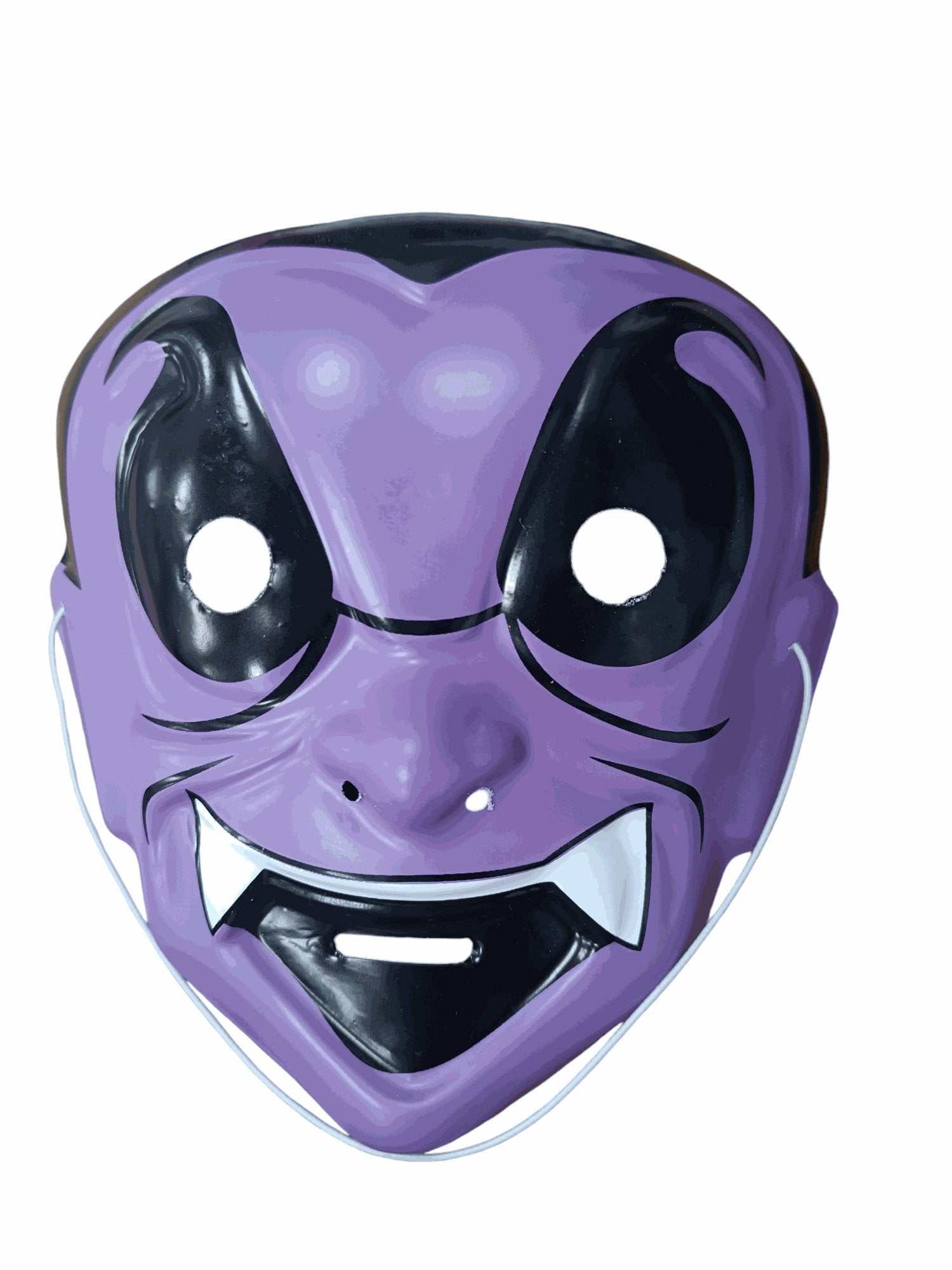 - Máscara de vampiro na cor roxa, com presas grandes e visual desafiador, para quem busca um estilo dark.