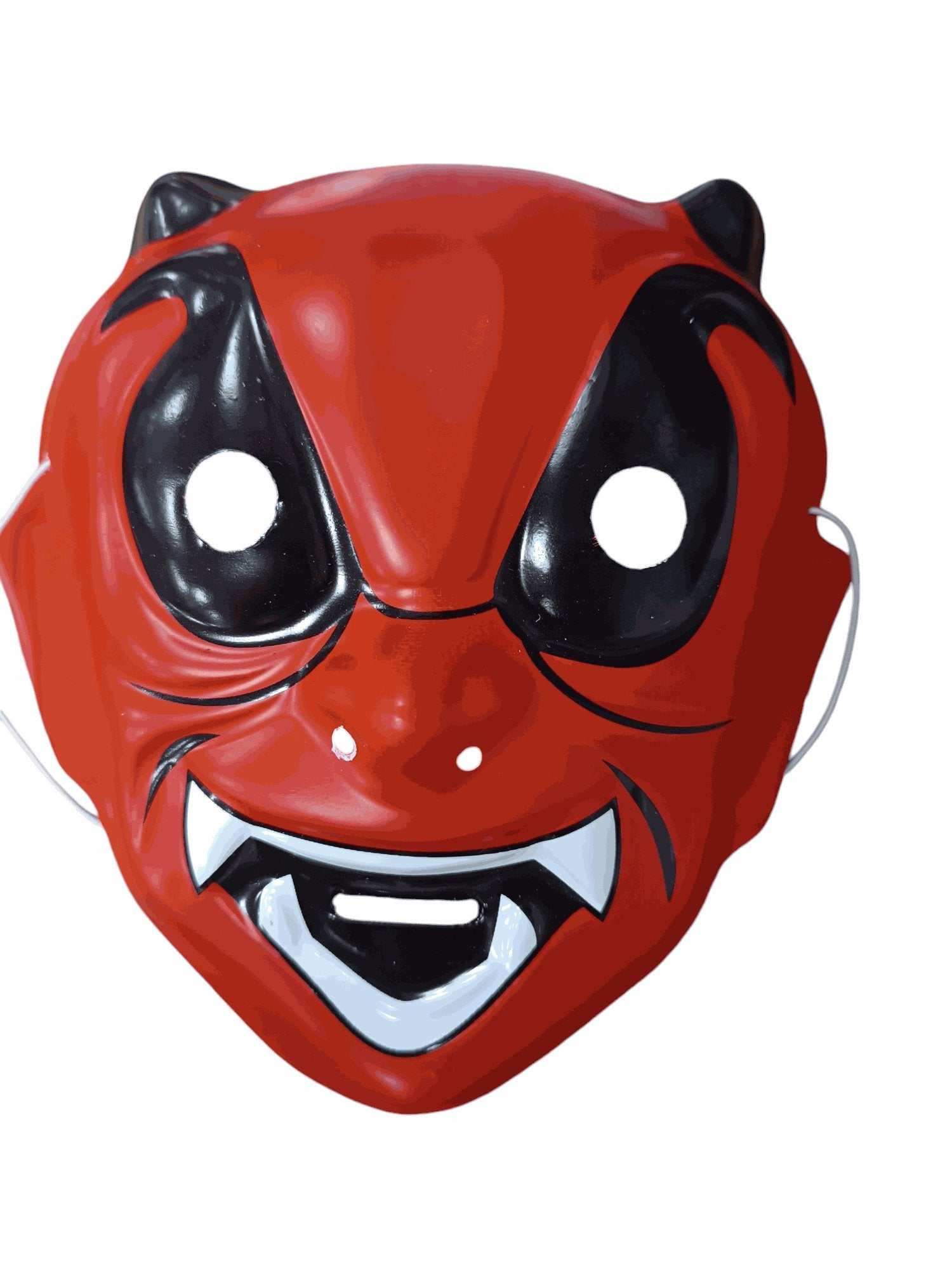 - Máscara demoníaca vermelha com expressão feroz, perfeita para causar um verdadeiro impacto.
