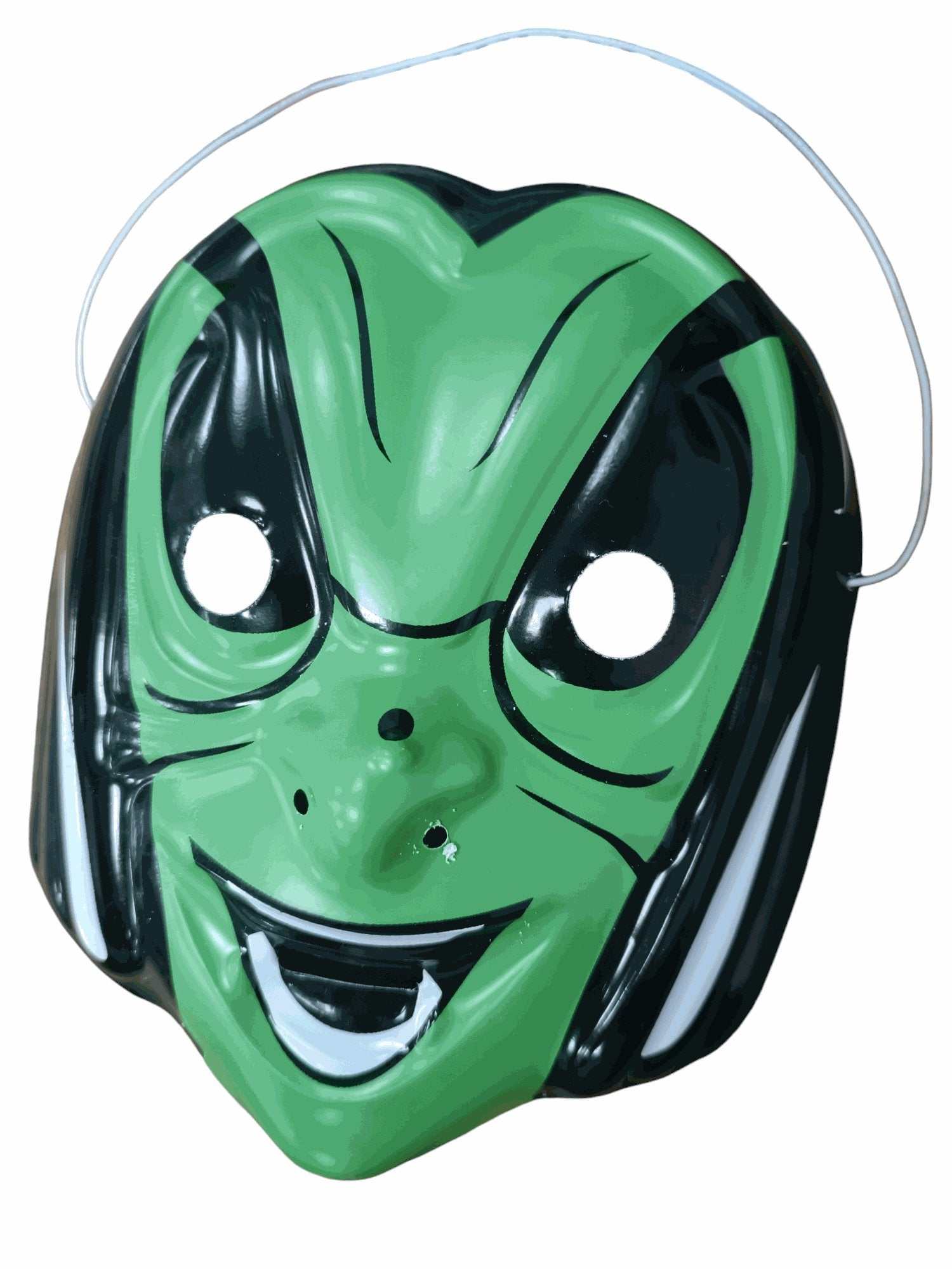 - Máscara de monstro verde com sorriso misterioso, ideal para um divertido toque de terror.